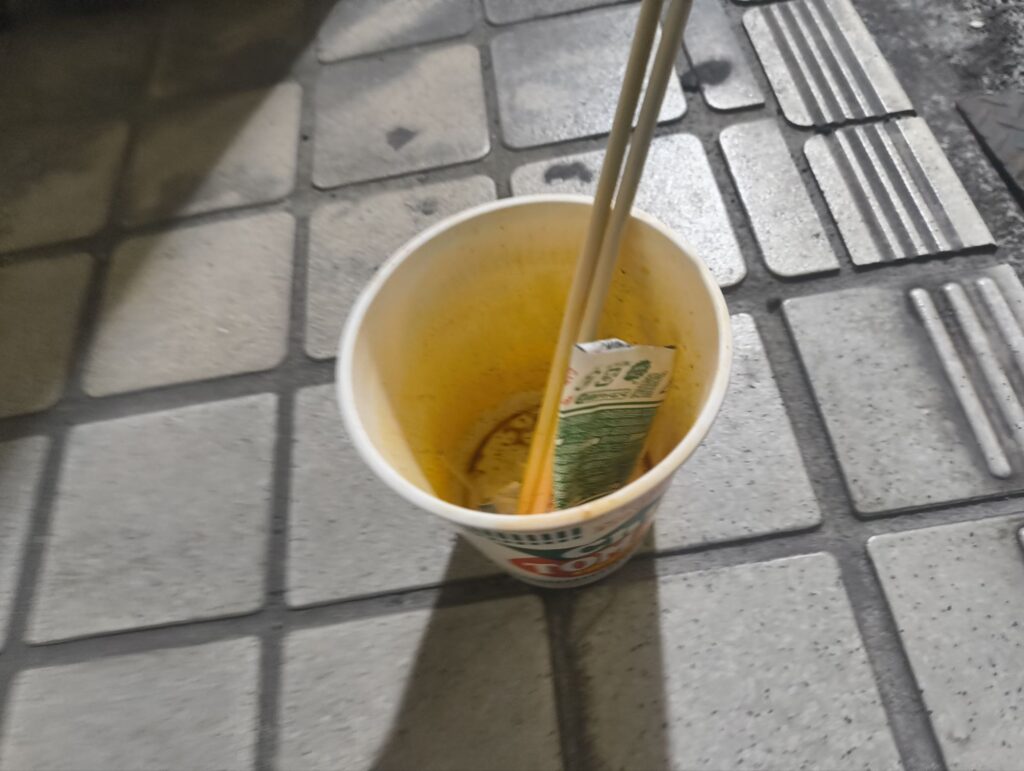 カップラー猿 雑記 X Facebook はてブ Pocket LINE コピー 2026.02.24 ごちそうさま カップラーメンは外で食べると美味しさ二倍 じーちゃんには お前!いつもカップラーメンばっかりだめだぞ! って言われるけど、 じゃあご飯作ってくれるの? って言ったら作ってはくれないらしい。 このあとは店舗だ 朝はウーバーがんばるぞお!!