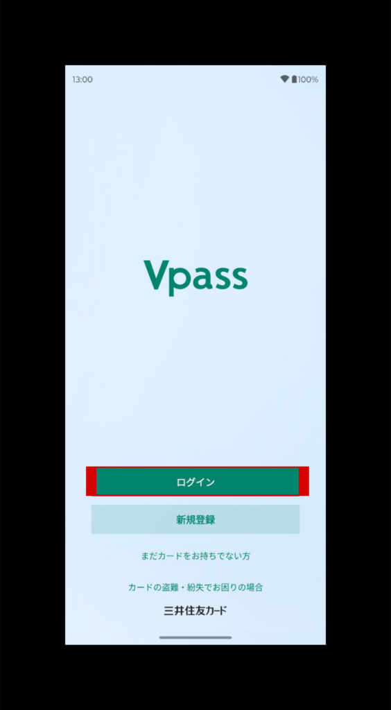 Vpassアプリを開き、ログイン(赤枠)をクリック