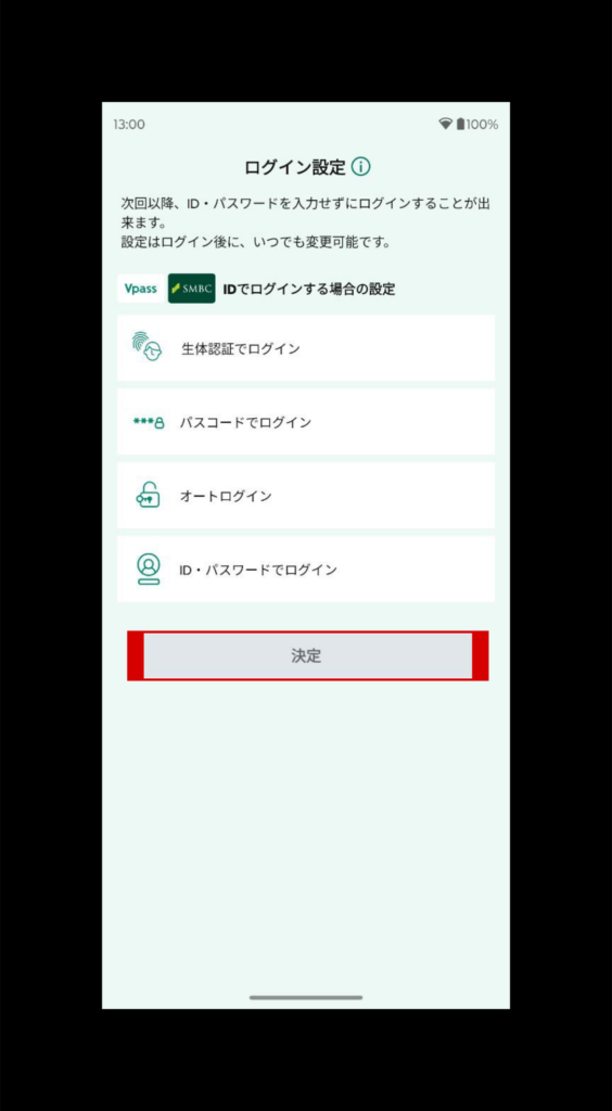 ログイン設定を自分で決め、決定(赤枠)をクリック
