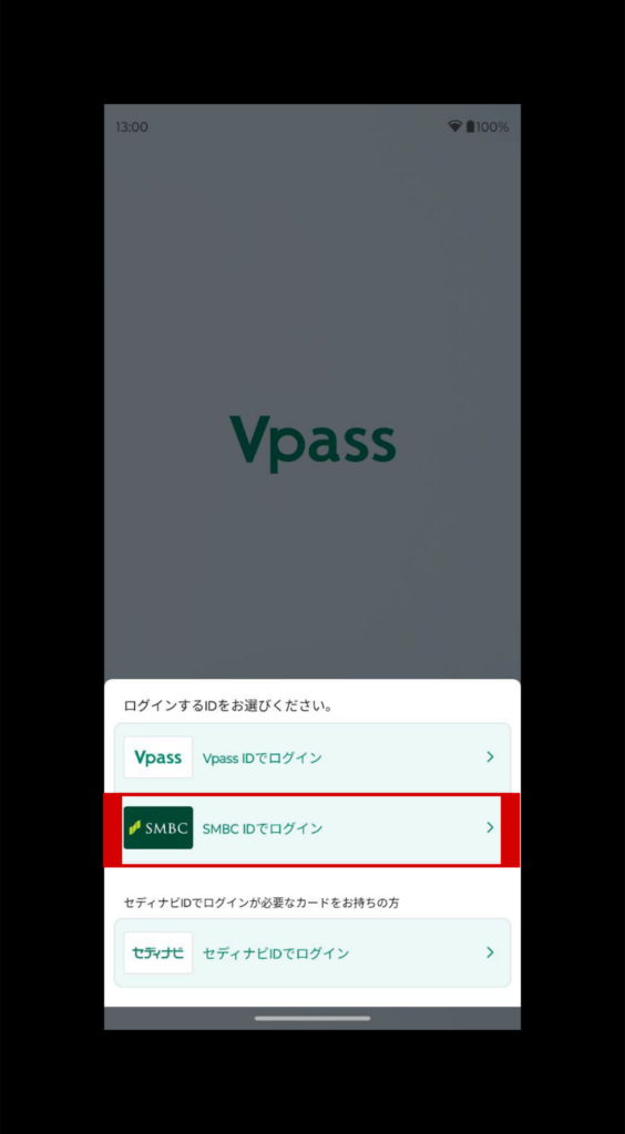 SMBC IDでは、三井住友銀行アプリ、Vpassアプリとどちらのアプリにもログインができ、Vpass IDでは、Vpassアプリへのログインが可能となります。