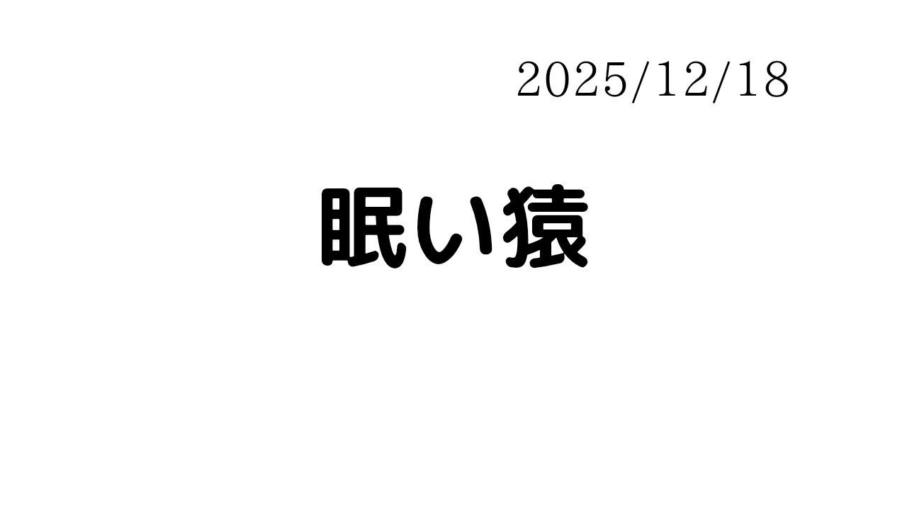 眠い猿 雑記 X Facebook はてブ Pocket LINE コピー 2025.12.18 最悪、寝不足だ。 まーた誰かがやりっぱで帰りやがった 猿も別に綺麗好きではないけど、 みんなが酷すぎて、 絶対この人たちと一緒に生活できないって思うレベルです。笑
