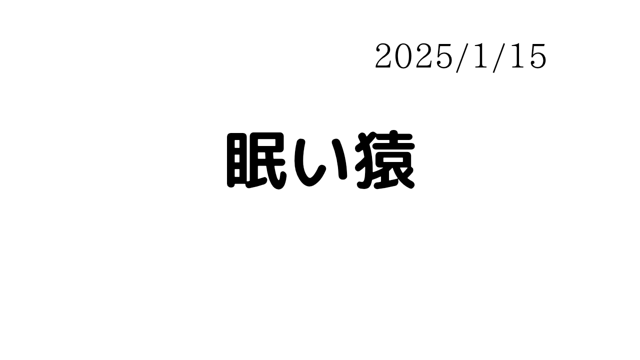 眠い猿 雑記 X Facebook はてブ Pocket LINE コピー 2026.01.15 今日も寝不足になってしまった。 まだまだ頑張らなければいけない 今年は、変化をだしていきたい。 スロットでは変化がでてる。笑 この調子でまだまだ頑張ります。 あれ? まあまいいや 夜勤、がんばりまそお!
